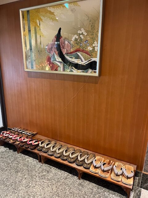 宿の玄関には下駄が・・当たり前に並んでいます 竹取亭も並んでいますが下駄を履く方···