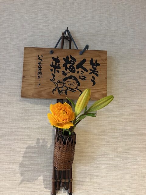 竹取亭玄関に・・ 笑う人には福が来る いつも笑顔で・・・おもてなしを スタ···